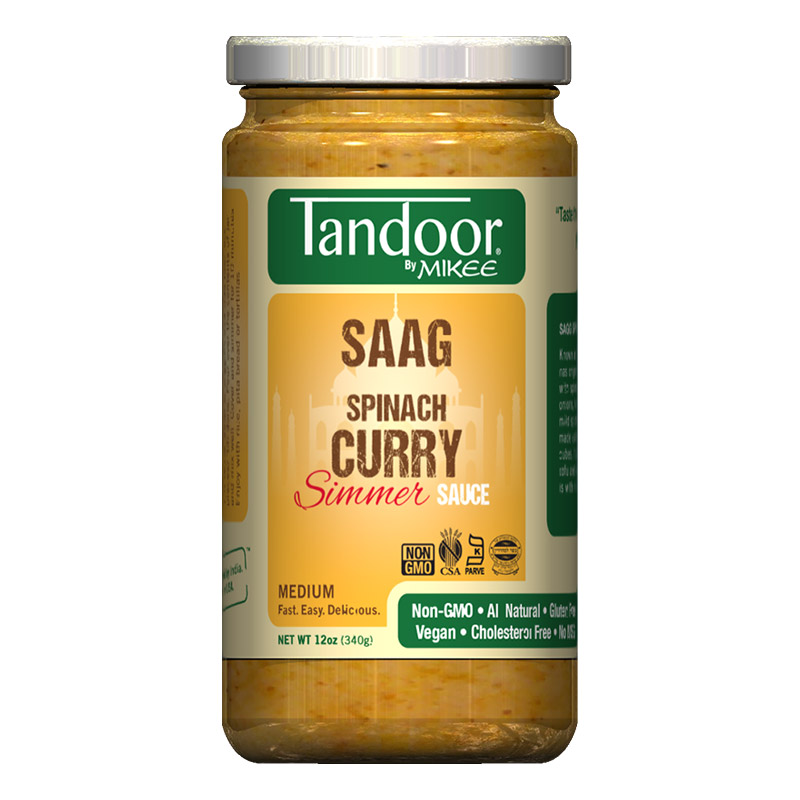 Known as SAAG in Northern India where it has originated, this nutritious sauce is made with spinach or mustard leaves, cream, onions, tomatoes with a hint of lime and mild spices. The popular Palak-Paneer is made using this sauce with cottage cheese cubes. It goes equally well with all meats, tofu and vegetables. Or heat and eat it as it is with rice, tortillas or bread.